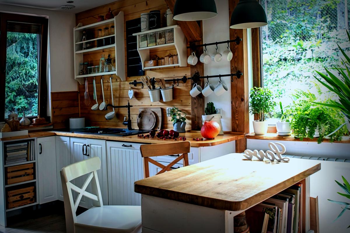 N’oubliez pas d’aborder la cuisine, espace central dans l’univers cottagecore. Pensez à une table en bois massif, quelques pots de confiture sur une étagère, une nappe à carreaux, et vous voilà presque dans un cottage anglais. Si vous avez un petit extérieur, même un simple balcon, plantez des herbes ou des fleurs pour retrouver cette connexion avec la terre.